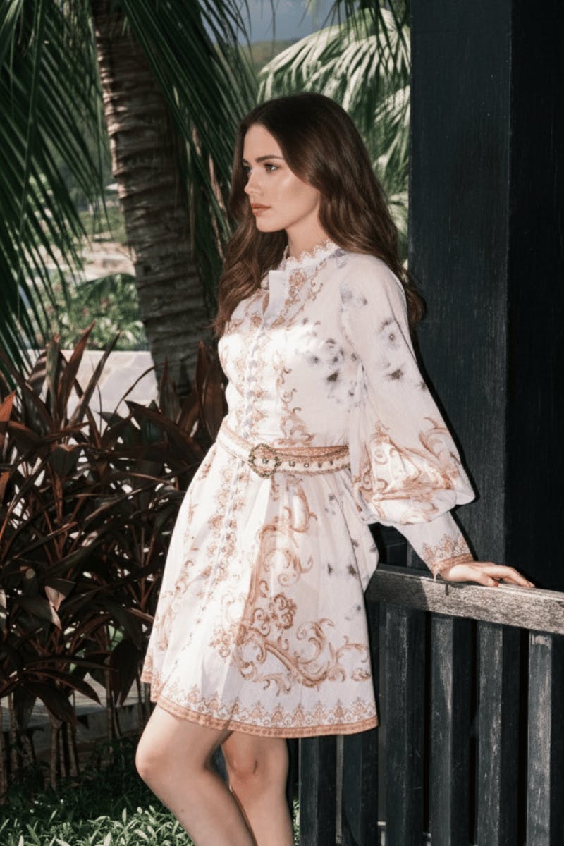 - Full-length sleeves finished with lace cuffs and ribbon ties